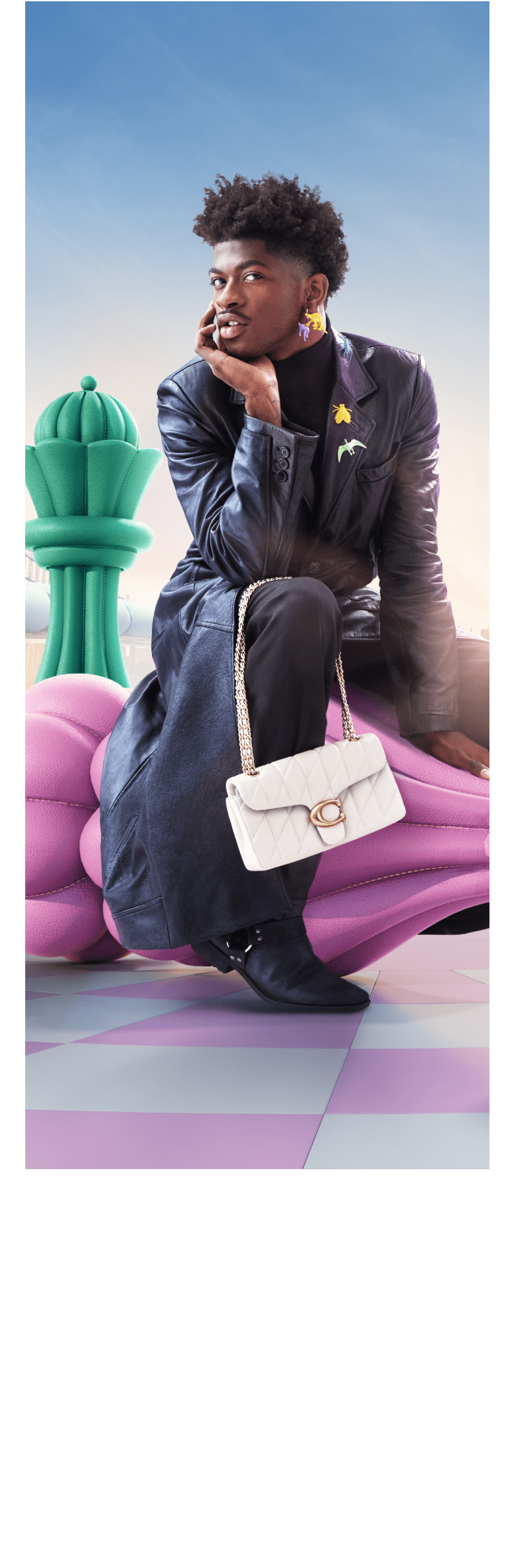 As imma delves into Lil Nas X’s cotton candy-colored world, this season’s most covetable Coach bags take on a new life virtually and IRL. imma and Lil Nas X rock Coach’s quilted Tabby 26 in Black and Chalk as they progress through the level. In case it was any question, imma may need some guidance on being real but she certainly has the whole fashion thing covered.