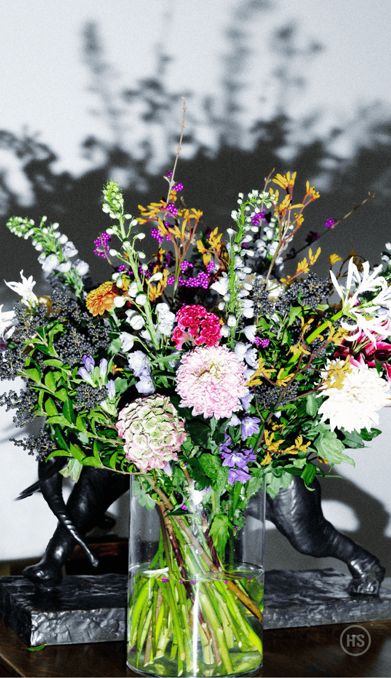 Van Noten stands up abruptly. It’s the first notable physical shift he’s made in about 30 monkish minutes of gentle gesticulation and stream-of-conscious dialogue. The patchwork quilt of visual and audible stability is suddenly yanked away; I’m practically bowled over. “Sorry, sorry, one second,” he murmurs, vanishing off-screen.
