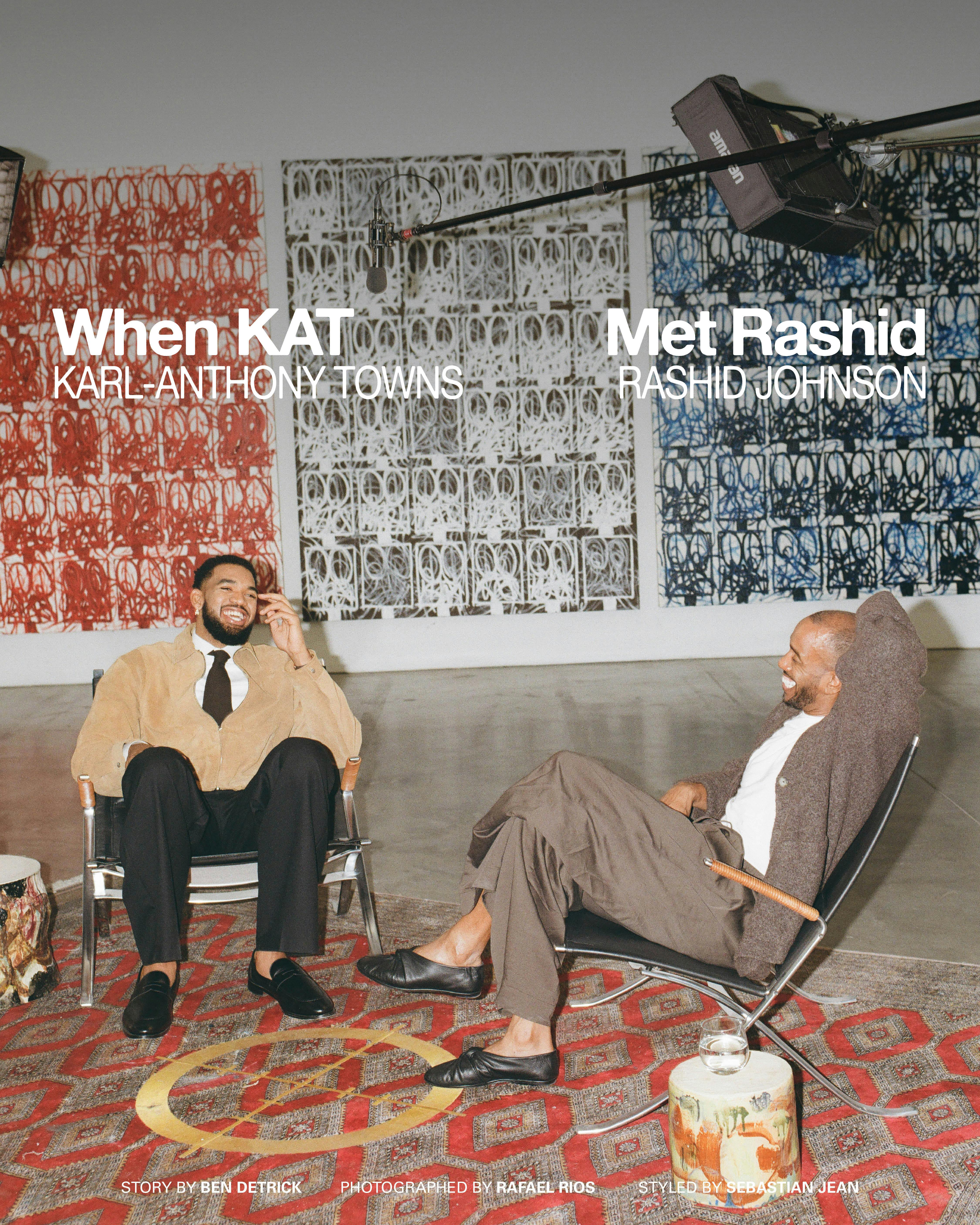 When Rashid Johnson, one of the most successful multidisciplinary artists of his generation, met Karl-Anthony Towns, the seven-foot All-Star center from the New York Knicks, there was an immediate connection. It was late April 2025, the Knicks were heading into the NBA playoffs, and Johnson’s blockbuster, career-spanning retrospective was opening to great acclaim at the Guggenheim. KAT walked in, they were introduced, and “it felt like the world was at a standstill,” Towns says. “Even for the five, 10 minutes we had together in that chaotic scene.”