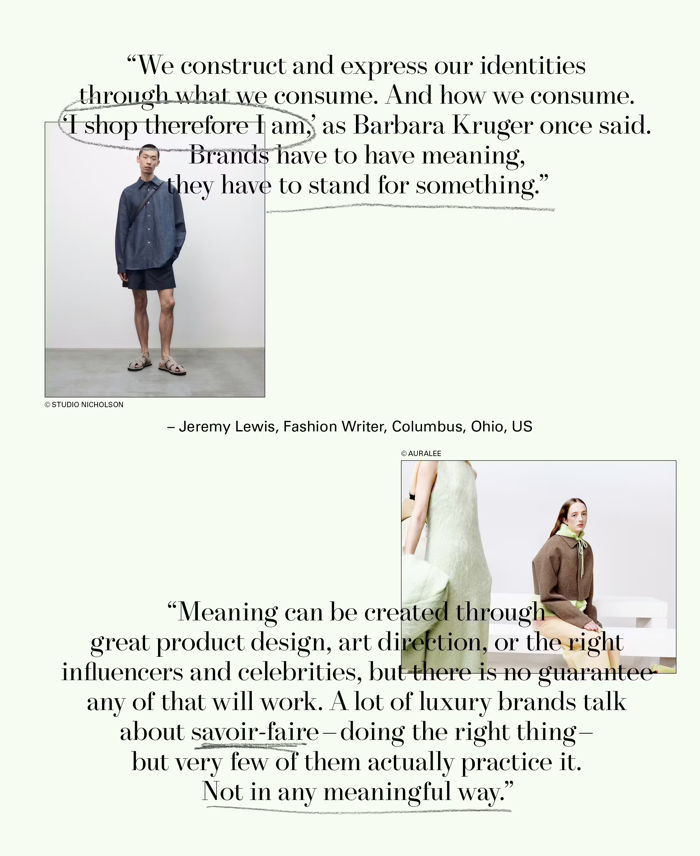This rejection of anything that may be considered a stunt speaks to, we believe, a reactive desire for stability and authenticity. Six years ago, we predicted that the future of luxury fashion branding was cultural credibility. Today, we see, through the lenses of research and instinct, that this is now firmly the case.