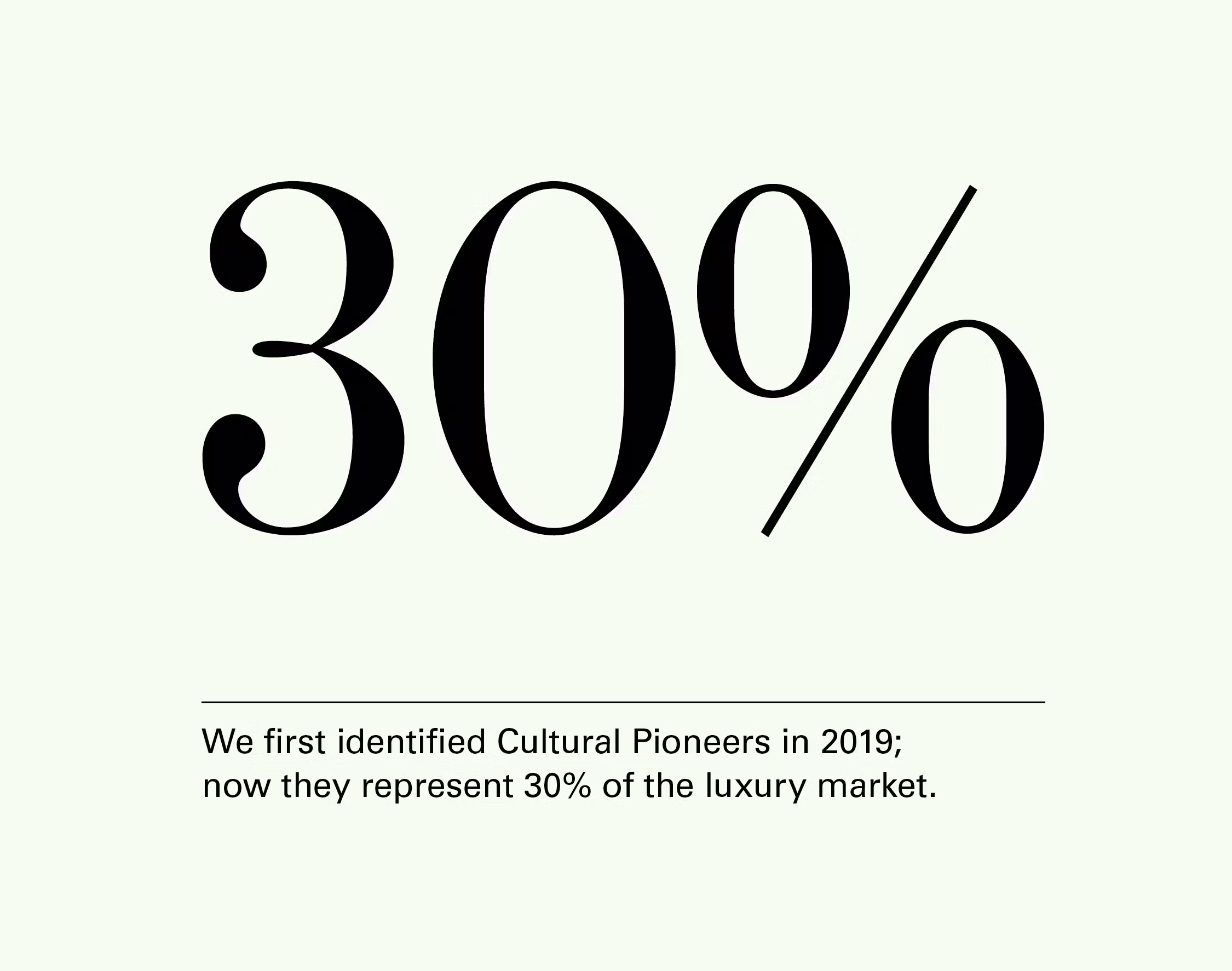 This year, through a series of pointed questions, we recognized a whole 30% of Core Luxury Consumers as Cultural Pioneers, which tells us that the cutting edge is expanding. As time progresses and access to information becomes more readily available, audiences are increasingly self-educating, seeing value in becoming an influencer’s influence rather than the influenced.