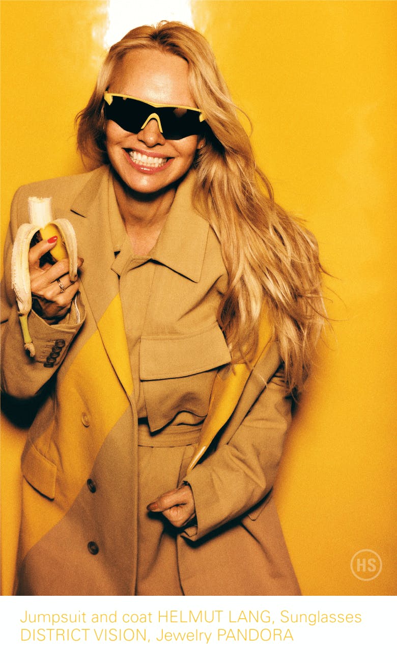 “No Cetaphil?” I ask, speculating on what must go into this whole no-makeup thing. “No, I’m a tomboy! I was actually always a tomboy growing up,” she confesses, as if this is still a surprise to her, even though she put it in her recent memoir, Love, Pamela, and says as much in the 2023 Netflix documentary Pamela, A Love Story. “I never wanted to wear a dress. I was athletic. I made mud pies,” she says, gesturing with her left arm, as if her childhood were sitting next to her, just offscreen.