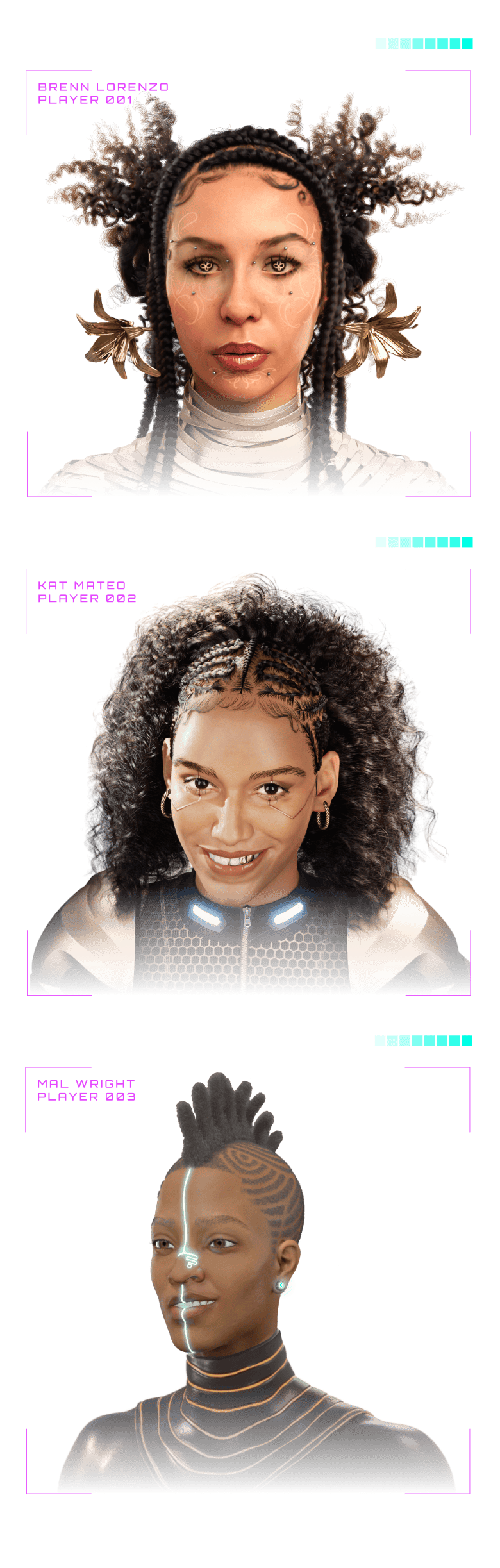 This sentiment echoes a reality that Brenn Lorenzo, Kat Mateo, and Mal Wright know all too well. Growing up, playing video games meant seeing avatars that didn’t look like them, lacking their hair texture, their skin tone, and their overall essence. Occurrences like this were catalysts that colored their mutual journeys of learning to love their hair and, in turn, themselves. United by this shared experience and the nuanced commonalities of navigating the world unapologetically as Black women, these three dynamic forces from varying walks of life pay tribute to their crowns. Through Dove’s Code My Crown initiative, Lorenzo, Mateo, and Wright’s distinct features are forever immortalized and etched into cyberspace—materializing not only as the representation their younger selves needed to see but also as an ode to those who still feel unseen today.