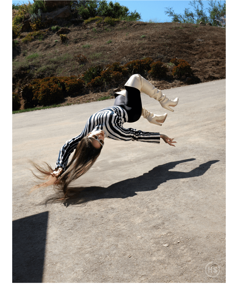 This is the Rose who shows up to set for Highsnobiety in Los Angeles. No famous friends around her; no memes or jokes. She doesn’t check her phone or Irish exit. Rose can’t help but be CUUUUuuuuuute. She’s a visionary, too, of course, with an excellent fucking voice and a real sense of style.