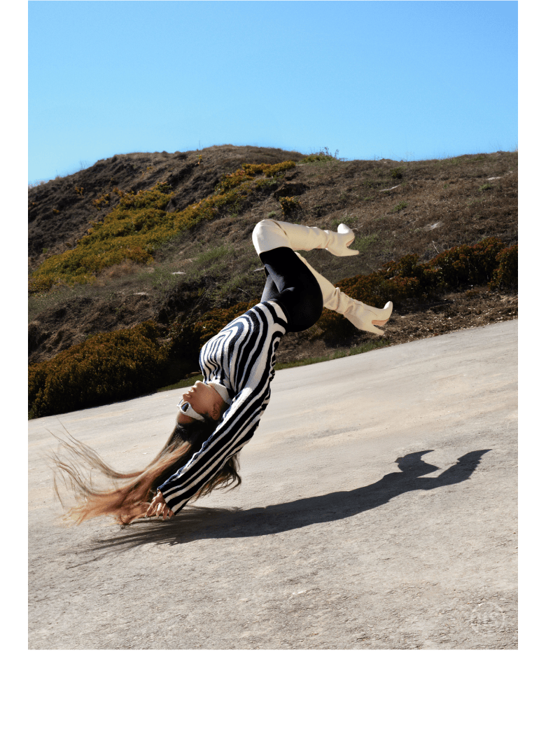 If I blink quickly, Rose is in a Chopova Lowena skirt on my Instagram page, but then she’s sporting a custom blue Off-White™ dress in her music video for “CANDY.” Rose cares about designers, and the right ones, too, I might add: Prada, Acne Studios, Rick Owens, Gerrit Jacob, Junya Watanabe. I will never forget her performance at the Louis Vuitton show in Paris, where her new friend Colm Dillane of KidSuper asked her to perform as a favor; her voice was omnipresent. It was the second time I’d seen the Spanish singer, songwriter, and producer perform.