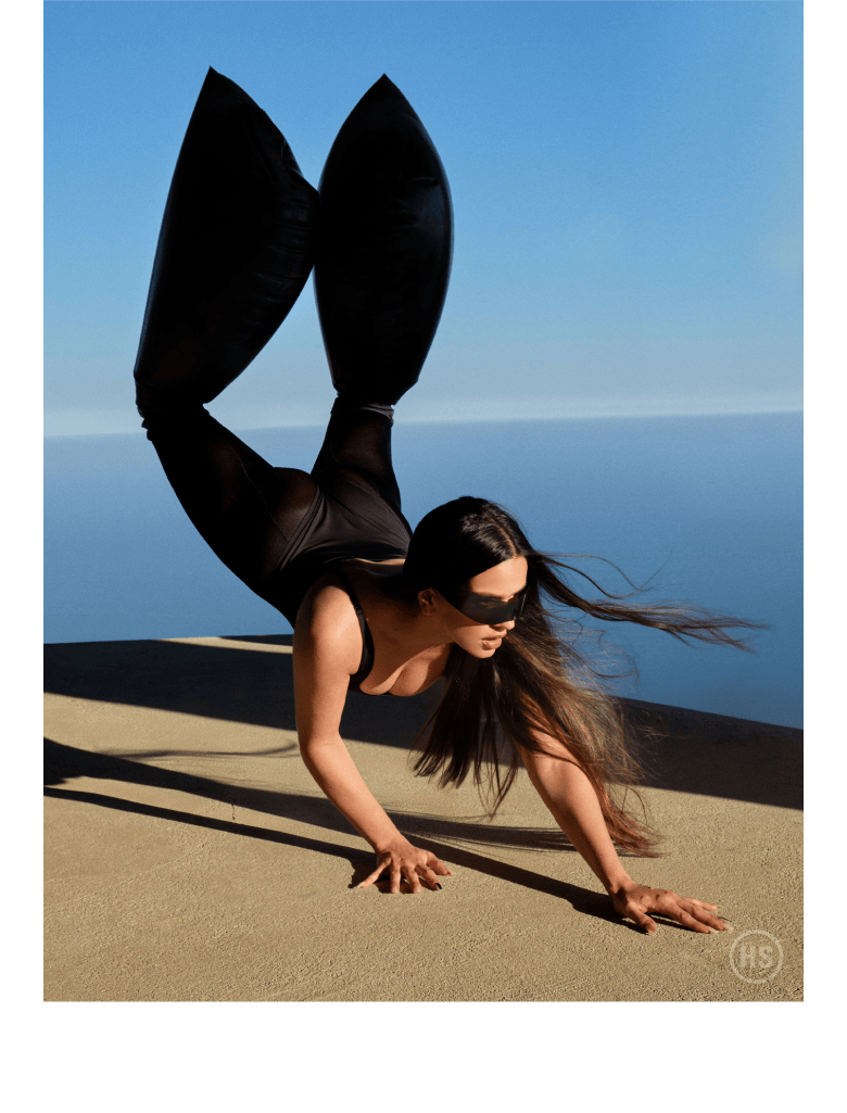 Top, pants, and boots ALAÏA Earrings EÉRA Rings PANCONESI