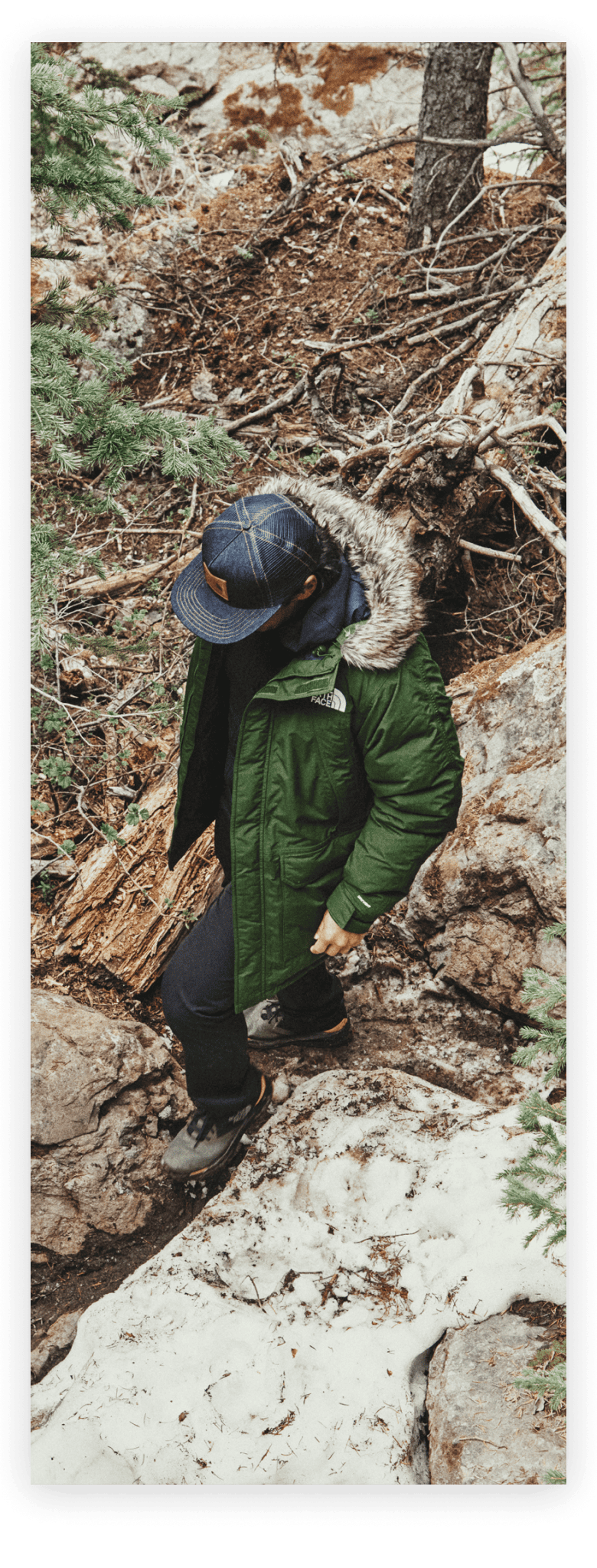 The Sierra Parka was my first connection with the brand. As an aspiring climber, having a The North Face Sierra Parka… and a JanSport frame pack was the look I was after. It was also quite functional. There is tree sap on the back, which is the worst fabric stain. There’s a reason old time boats were built with sap and pitch for water-fastness. [There’s also a] ramen/watery oatmeal spill patina up front. (Note: Conrad’s Sierra Parka has found a home on display at The North Face office.) [Since then, I’ve been enabled to pursue] a personal journey of self-discovery with friends in a location that is inspiring to one’s soul. I need wilderness and the shared experience of working towards a goal to survive our oversubscribed life.